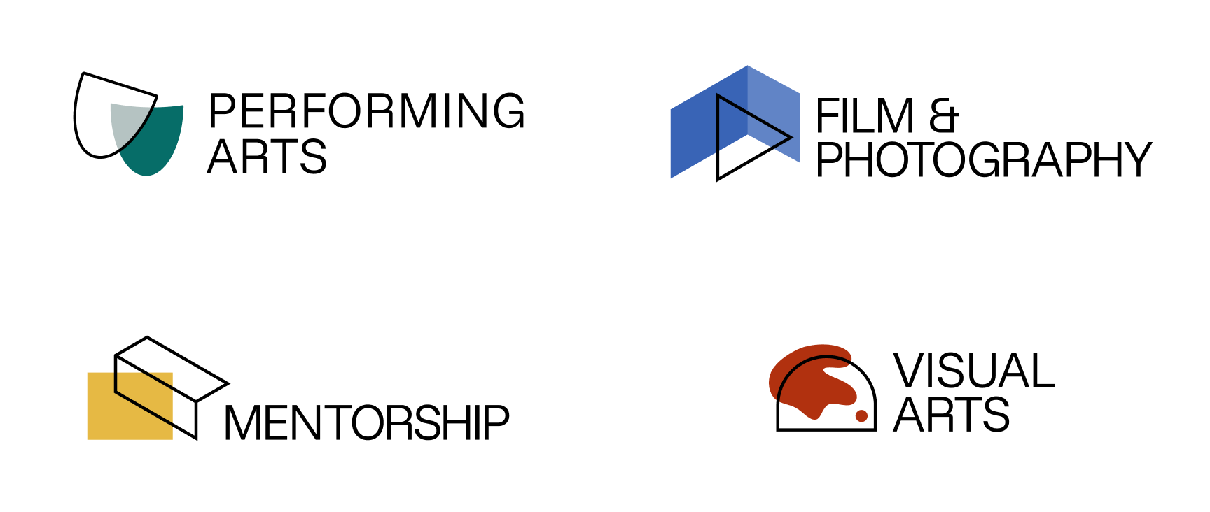 The main logo is supported by a system of subcategory logos, each representing different aspects of the brand while maintaining a cohesive visual identity. These secondary logos can be used in promotional materials by blending shapes, colors, and media to create a dynamic yet unified look. Each design adapts seamlessly to various contexts, ensuring consistency across digital and print platforms. On the website, these logos also function as a set of patterns, reinforcing the brand’s presence while adding depth and visual interest to the overall design.
