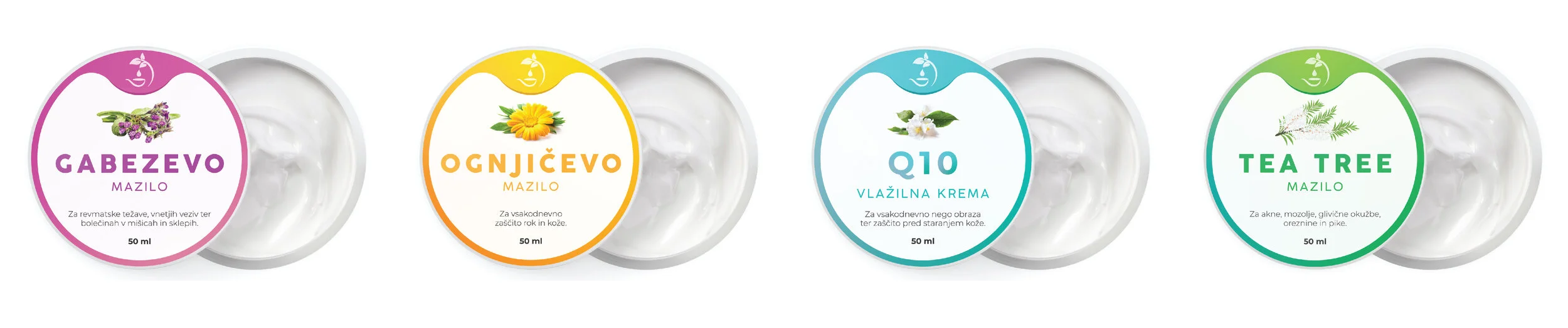 For the design of the creams we decided to go with bright colors which resembles the color of the herb that the cream includes. There is also a picture of the herb on the top.