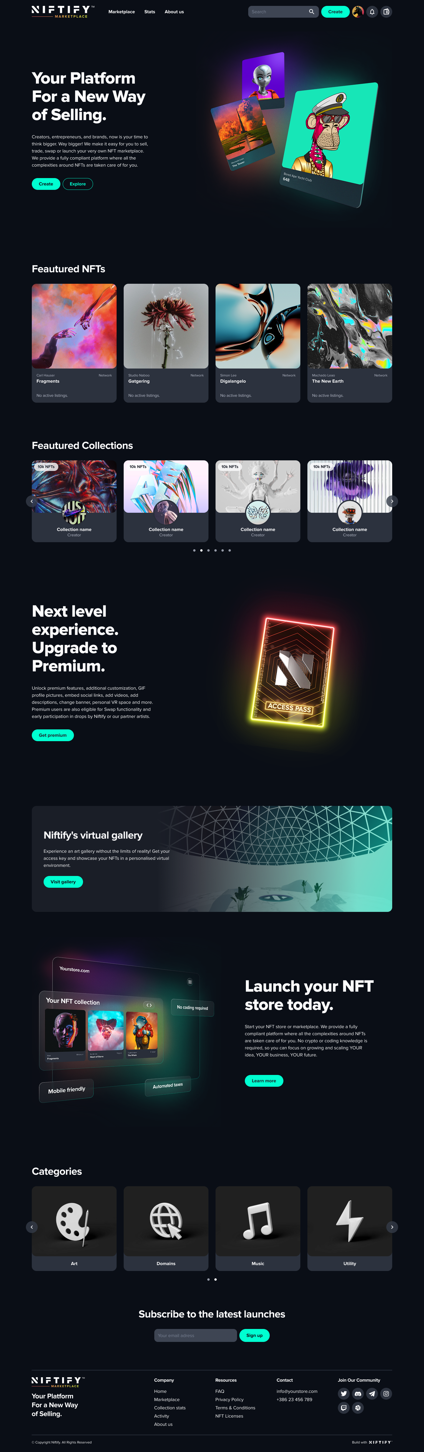 • Promotional visuals that conveyed the ease of building a virtual gallery with Niftify’s tools.