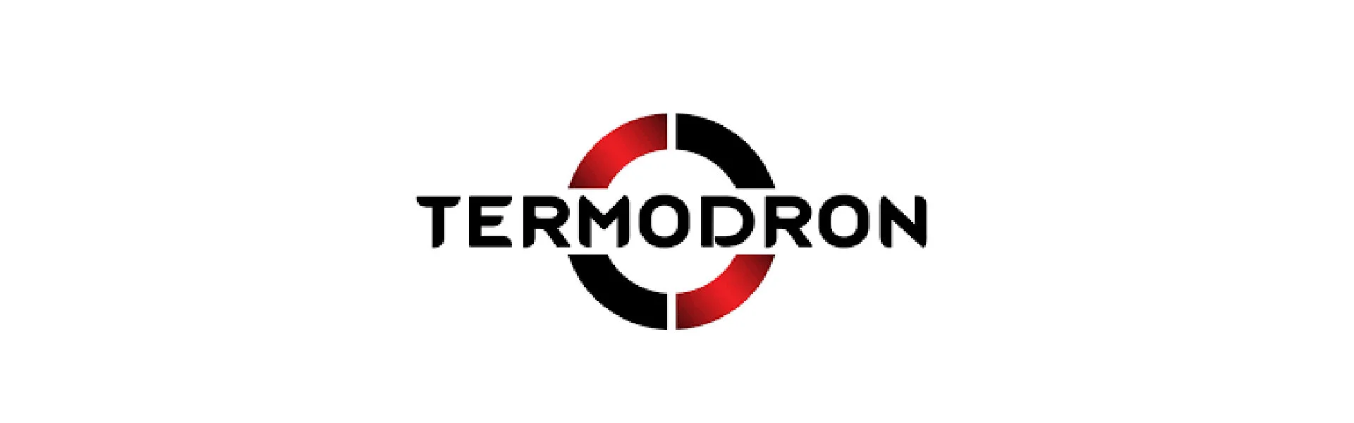 Old logo for Termodron. We decided to reuse the round shape to resemble a drone from a bird's eye view, but cut back on the red and black color scheme. We also made a logo and the company name a separate element for wider use case